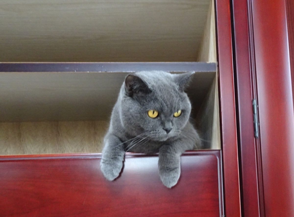 この写真は最高傑作で タンスの引き出し部分に籠城しているオトコにちょっかい出してる姐さんの後ろ姿です